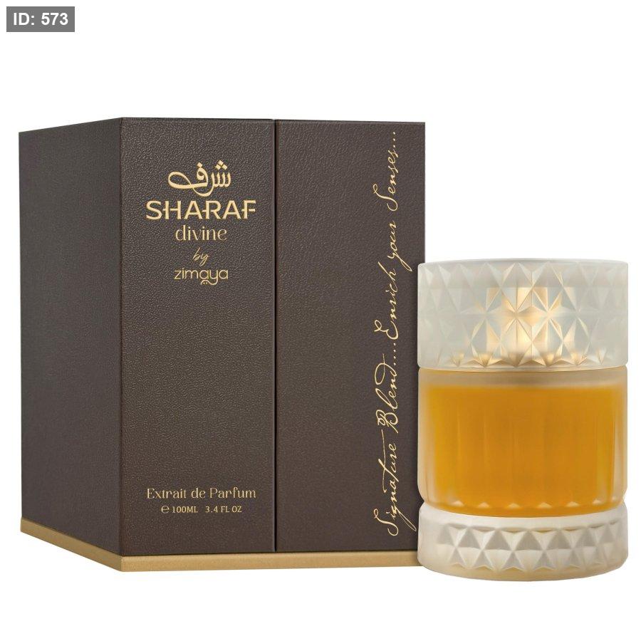 Sharaf Divine Zimaya عطر شرقي - فانيليا للجنسين. هذا عطر جديد Sharaf Divine صدر عام 2025. إفتتاحية العطر توت العليق, القرفة و البرغموت; قلب العطر التفاح, الكاراميل و الورد; قاعدة العطر تتكون من الكونياك, الفانيليا, العنبر, حبوب التونكا و الطحالب.