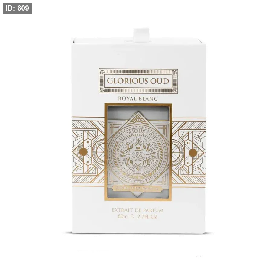 Glorious Oud Royal Blanc French Avenue عطر خشبي - تشيبر للجنسين. Glorious Oud Royal Blanc صدر عام 2022. إفتتاحية العطر الكشمش الأسود و الطحالب; قلب العطر البرغموت, الماغنوليا و الماندرين (اليوسفي); قاعدة العطر من خشب الصندل الأبيض.