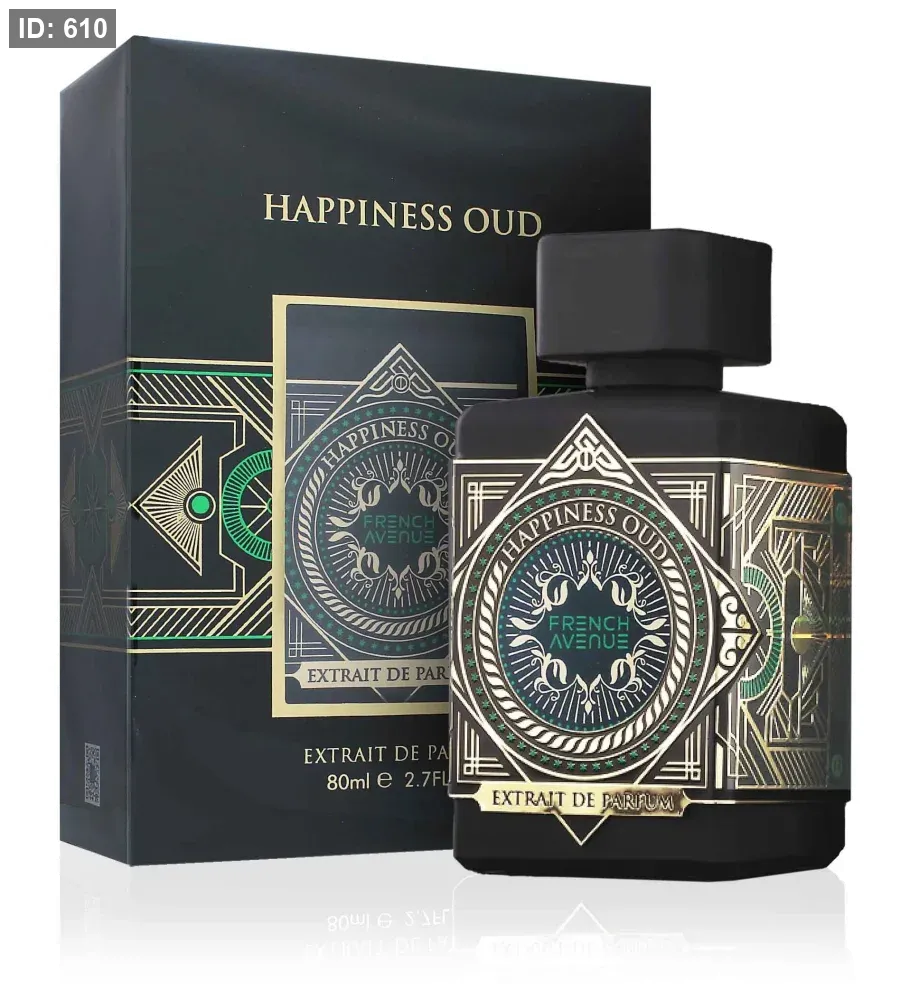 Happiness Oud French Avenue عطر خشبي - حار للرجال . Happiness Oud صدر عام 2023. إفتتاحية العطر الزنجبيل و البرغموت; قلب العطر العرقسوس, خشب الأرز و العود و العود; قاعدة العطر تتكون من الفانيليا, النوتات العشبية و المسك.