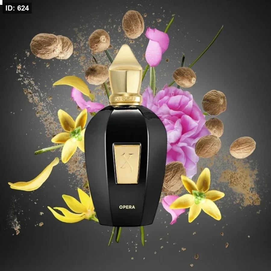 Opera Xerjoff عطر خشبي - زهري - مسك للجنسين. Opera صدر عام 2019. Chris Maurice قام بتوقيع هذا العطر. إفتتاحية العطر الفواكه و الورد التركي; قلب العطر الإيلنغ, جوزه الطيب, الجلود و العنبر; قاعدة العطر تتكون من الباتشولي, الفانيليا, المسك, خشب الأرز من فرجينيا و نجيل الهند من هايتي.