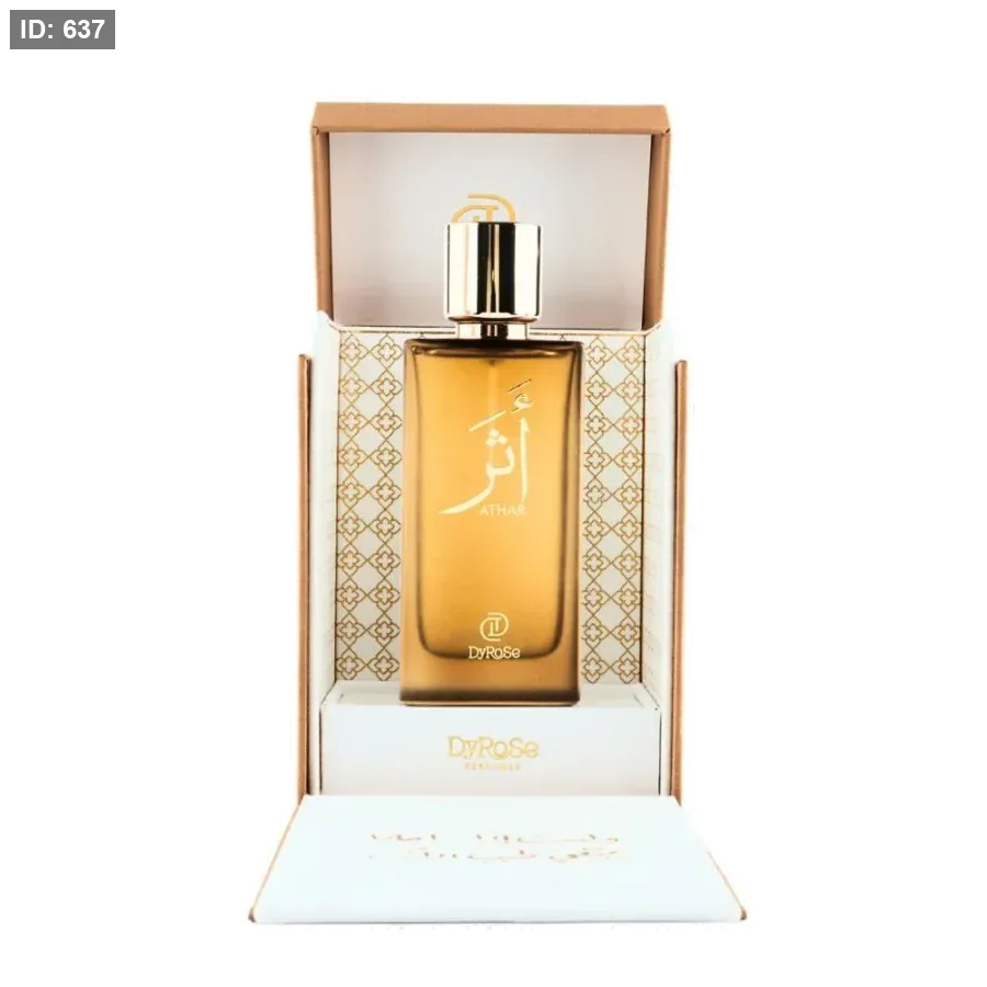 Athar Dyrose عطر خشبي - أروماتك للرجال . Athar صدر عام 2021. إفتتاحية العطر الجريب فروت; قلب العطر الزنجبيل و الأمبريت; قاعدة العطر تتكون من الباتشولي, نجيل الهند, الأمبروكسان و المسك.