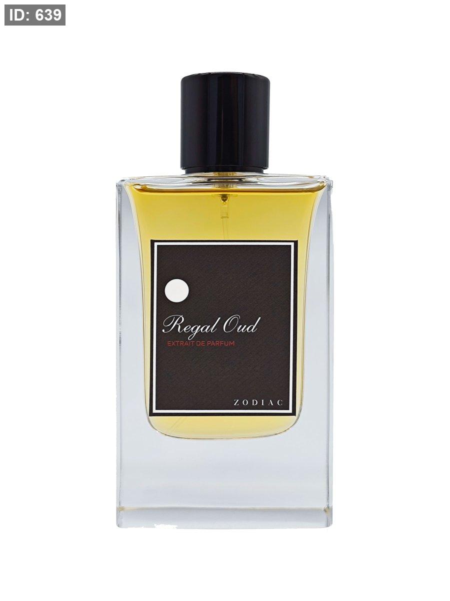 Regal Oud Extrait de Parfum Zodiac عطر الجلود للجنسين. Regal Oud Extrait de Parfum صدر عام 2023. إفتتاحية العطر الباشون فروت, نوتات الفواكه, الزعفران و الورد; قلب العطر العود و أوراق الباتشولي الإندونيسي; قاعدة العطر تتكون من الجلود, أكيغالاوود و العنبر.
